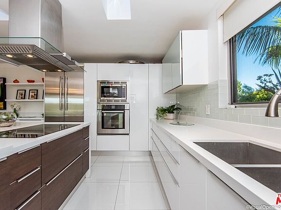 WOW! Amazing opportunity to own in the coveted Royal Oaks Community! Located on a quiet cul de sac, this luxurious contemporary home features unparalleled canyon & city views. The sophisticated timeless design features a modern open floor plan w/spacious living throughout the house. With attention to detail, the step down living room w/fireplace is complemented with French Limestone and Fleetwood sliders that seamlessly transition to a 5 star hotel like resort yard, sparkling pool & stunning views - perfect for entertaining. The one of a kind chef's kitchen features Italian cabinetry, Bosch appliances & is perfect for hosting parties; keeping guests entertained all year long. Four bedrooms are downstairs while the oversized master suite w/fireplace, balcony views & spa-quality bath located upstairs. Home is located only minutes away from the prestigious Lanai School District.