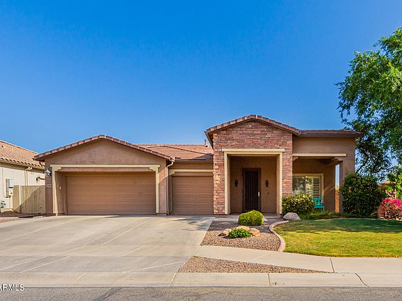 Need help with closing costs?? Seller willing to pay 2% towards closing costs or buy-down rate! Own this gorgeous corner lot home offering grass, security front door, front porch sitting area, and extended 3-car garage w/built-in cabinets, racks & workbench. Split floor plan boasts a living room w/custom built-in, surround sound, plantation shutters, formal dining w/mirror, laminate flooring, tile and carpet throughout with carpet in bedrooms and wood-look floors in the living room! Kitchen includes granite counters, pantry, eat-in kitchen area and breakfast bar. Laundry room w/built-in cabinets, just off the kitchen. Master bathroom has a separate shower and garden tub, double sinks and large walk-in closet. Relax and unwind in your very private backyard featuring grassy area, lush... plants, pavers extending the large extended patio with ceiling fans to the wood hearth and Pergola with sitting area and water fountain! North/South exposure, gas hot water heater, electric stove & dryer, ceiling fans throughout, sprinklers & watering system, gutters, solar tubes & green belt area just across the way!