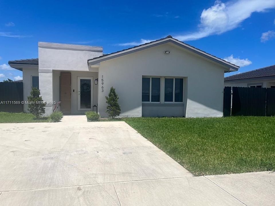 Beautiful 3 bedrooms, 2 bathrooms single-story home. This spacious and open design homes features ceramic title through out, impact windows and doors, tile roof, Kitchen w/ Quartz Tops, White Cabinetry & a Stylish Large Island. SS appliances, a spacious fenced backyard perfect for entertainment. Property was built in 2021 but has no CDD and no HOA. The property is located near Hospitals, shopping centers, good schools, and the Turnpike expressway. It is also close to the Florida Keys. This house only need your personal touch don't miss this opportunity