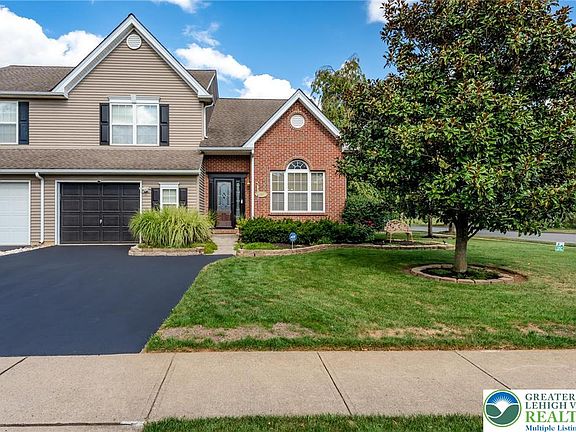 Absolutely Beautiful Home in The Landings – East Penn School District. This stunning semi-detached 3-bedroom, 3-bath home offers the perfect blend of style, comfort, & convenience in the highly desirable Landings community, East Penn School District. Meticulously maintained & thoughtfully updated, it’s move-in ready & sure to impress. Step into the welcoming 2-story foyer with vaulted ceilings & gleaming hardwood floors that flow throughout the home. The open, light-filled living & dining room features soaring ceilings & expansive windows, creating a bright & inviting atmosphere. The updated kitchen boasting granite countertops, a tile backsplash, flows seamlessly into the family room. From here, step through onto the spacious deck — ideal for entertaining or relaxing. Perfectly placed trees offer privacy, while the paved patio offers stunning views of open fields & mountains. Upstairs, the primary suite is a true retreat with vaulted ceilings, hardwood floors, two walk-in closets, & bath w/ double vanity, soaking tub, skylight, & soaring ceiling. Two more bedrooms, a full bath, & a versatile loft/den overlooking the living room complete the 2nd fl. The finished lower level adds versatile living & storage space. Enjoy life in a welcoming community w/neighborhood park, dog park, & open space, near Hamilton Crossings shops/restaurants & easy access to Rt. 100, 78, and 22. This is the home you’ve been waiting for!