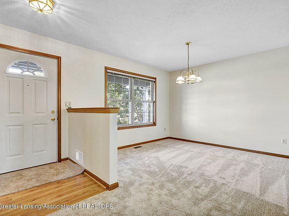 Welcome to 1597 Holbrook Drive in Holt! This home is move in ready. Features a neutral, warm, freshly painted palate with new flooring and a transferrable warranty on the carpet. The foyer enters an open floor plan with dining room/office space, a half bath, eat in kitchen and living room. Upstairs is the primary bedroom with very large walk in closet and private bath with shower. Bedrooms two and three are also on the second floor and share an additional full bath . The hallway has a large linen closet. The finish-able basement is open and has the laundry area. Lots of space to finish and for storage. Nice rear deck for your grilling enjoyment and a private yard that shares fencing with the neighboring properties. Great location! Easy access to Holt AND Mason. Call today for a showing!