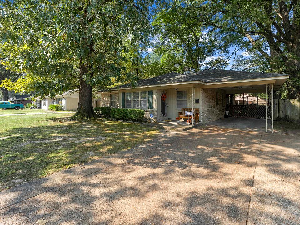 This charming ranch-style home welcomes you with a front porch perfect for chatting with the neighbors. Inside, you will find 3 bedrooms and 1 full bathroom and versatile living spaces including an office area, dining room, and a spacious living room. Fresh interior paint, crown molding, and hardwood floors create a bright and inviting feel throughout. The efficient gallery-style kitchen offers a functional design, while the carport provides convenient covered parking. The driveway is large enough for 5 cars! Outside you will find a large, fenced backyard - ideal for pets or gardening. The screened-in back porch with TV is the perfect spot to unwind, catch your favorite game, or simply relax. New hot water heater (2025).