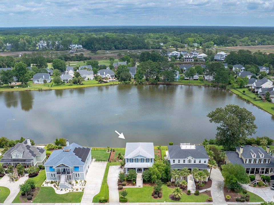 Life on the water-every day. In Rivertowne Country Club, this custom 3-bed/3.5-bath (3,348 SF) home offers panoramic views of an 18-acre pond. Reclaimed 7'' heart-of-pine floors set a warm, Lowcountry tone, while the great room with a gas fireplace flows to a screened porch and deck-perfect for golden-hour dinners. The eat-in kitchen features premium appliances and a butler's pantry with wine storage. Work from home in your dedicated office; host holidays in the dining room. Upstairs, the spacious owner's suite offers large, dual walk-in closets and private deck access. An expansive fenced yard offers space for a pool and more. Peace-of-mind extras: metal roof, hurricane shutters, and a 3-car garage. Community amenities include a park, pool, and tennis. Golf memberships are available.