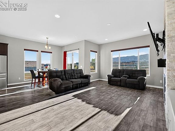 Welcome home to this stunning Classic Homes “Daybreak” floor plan in the highly sought-after Forest Lakes community of Monument! Built in 2019, this beautiful home blends modern design, functional living spaces, and timeless quality. This home offers 5 bedrooms, 4 bathrooms, and a spacious 2-car garage. Step inside to find an inviting open-concept layout filled with natural light. The main-level primary suite offers a peaceful retreat with a luxurious ensuite bath and walk-in closet. The gourmet kitchen features solid-surface countertops, stainless steel appliances, a large island, and a walk-in pantry — perfect for everyday living and entertaining alike. Downstairs, the expansive finished basement provides plenty of room for recreation, a media area, or guest accommodations, while still leaving flexible space for storage or future customization. Enjoy the Colorado outdoors on the covered patio, with a fenced backyard and views of the foothills. The Forest Lakes neighborhood is known for its walking trails, community parks, and easy access to the private lakes, making it one of Monument’s premier places to live.
