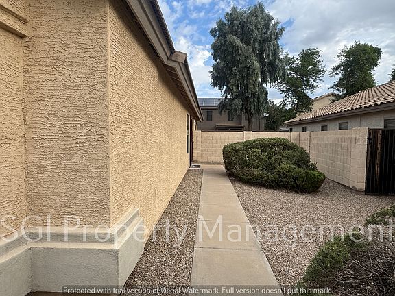This home is in absolutely fantastic condition with new carpet and paint, just ready for you to call home! The split floor plan is great with the master and 2 other bedrooms on opposite ends of home. Some of the amenities include open great room, vaulted ceilings, solar screens, front security door, separate dining area with breakfast bar, open kitchen with lots of cabinets, & blinds throughout home. Huge master has private bathroom with double sinks, separate tub/shower & walk-in closet. Private backyard has covered patio and grassy area. The location is wonderful close to restaurants, shopping, spring training baseball & I-10 Freeway