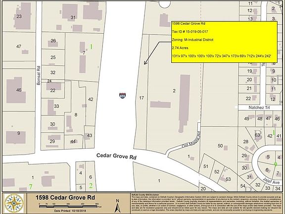 Excellent location & visibility with 1188' frontage along I-675 and 131' frontage along Cedar Grove Rd. Zoned Manufacturing/Industrial District, suitable for mixed-use development. Perfect for Billboard signage facing I-675. 82,000 vehicles passing per day (2016 DOT report). Property has power pole and suitable for storage building or cell tower.