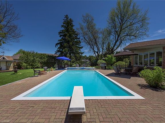 Incredible 100 ft x 180 ft mature North London lot + pool oasis! Roy James built, 4 bedroom floor plan w/ loads of square footage & spacious rooms. This beautiful side-split welcomes you home with thoughtful landscaping & stamped concrete entry. Main floor is semi-open concept offering a separate dining room & living room w/wood burning fireplace. The kitchen, w/ upgraded centre island, flows into the seating area/sun room w/ linear gas fireplace, overlooking the luscious, private yard & salt water pool. Large kitchen island features gas stove-top (2019). Fresh light grey paint throughout and warm, refinished hardwood. Garage stairwell to lower level. Bonus features in the yard include a fantastic bar/change room, newer shed, and charming play house fitted w/hydro! A perfect family home ready for summer staycations. Rec room 2020. Surround sound main floor. Robotic lawn mower. Jack Chambers P.S., 10 min. to University Hospital & Western University.