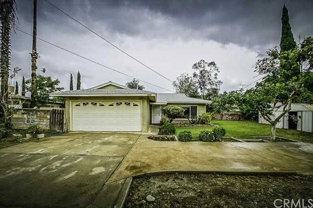THIS 3 BEDROOM 1 1/2 BATH 2 CAR GARAGE LOCATED NEAR THE 210 FWY AND THE 10 FWY. VERY CLEAN AND READY TO MOVE IN, WITH PLENTY OF CLOSET SPACE IN THE HALLWAY. BATHROOM, KITCHEN AND DINING AREA WITH TILE FLOORING. TWO YEAR OLD CENTRAL AIR AND HEATING AND WATER HEATER. DUAL PAIN WINDOWS THROUGHOUT AND CEILING FANS. THIS LARGE LOT HAS A CIRCULAR DRIVEWAY, FRUIT TREES, 3 SHEDS ONE WITH ELECTRICITY AND A GREEN HOUSE. A MUST SEE!