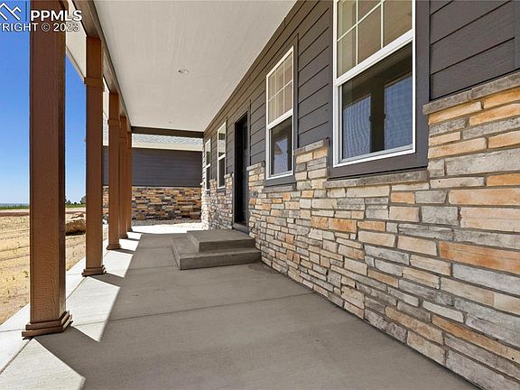 Just outside the vibrant heart of Colorado Springs, this private, 5-acre lot is only 1.5 miles away from Homestead Ranch Park, your doorstep opens to an expansive 450 acres of hiking and equestrian trails, a sprawling playground, a serene fishing pond, and more. Unveil a lifestyle where nature and adventure converge seamlessly. The single-story ranch-style home, with a walkout basement, boasts 3,904 square feet and represents a unique opportunity to immerse yourself in Colorado's natural beauty, all while enjoying modern amenities and exceptional craftsmanship by local boutique builder, Colorado by Design. The thoughtful design delivers panoramic vistas of Pikes Peak and the Front Range from every corner of your residence. Discover an inviting open floor plan bathed in an abundance of natural light and enhanced by vaulted ceilings and luxury vinyl tile. The living room, centered around a cozy gas fireplace, transitions seamlessly into a well-equipped kitchen adorned with quartz countertops, a tile backsplash, and stainless steel appliances. The primary suite serves as your personal retreat, offering expansive windows that bathe the room in natural light and provide unmatched views of Pikes Peak. The suite also boasts a seating area, and a generously-sized walk-in closet, offering ample storage space for your wardrobe and accessories. The accompanying ensuite bathroom is crafted with high-end finishes and the latest design trends. Immerse yourself in the allure of the walk-out basement, graced with large windows and a peaceful ambiance ensured by upgraded insulation in the floor joists. With a finished bathroom already in place, this basement provides a fantastic canvas for your personal touch. Additional features include a 2.5-car finished garage with epoxy coating, and an abundance of flat land for an equestrian barn, shop, or additional outbuilding. Experience the fusion of Peyton's serene beauty and the cosmopolitan energy of Colorado Springs.