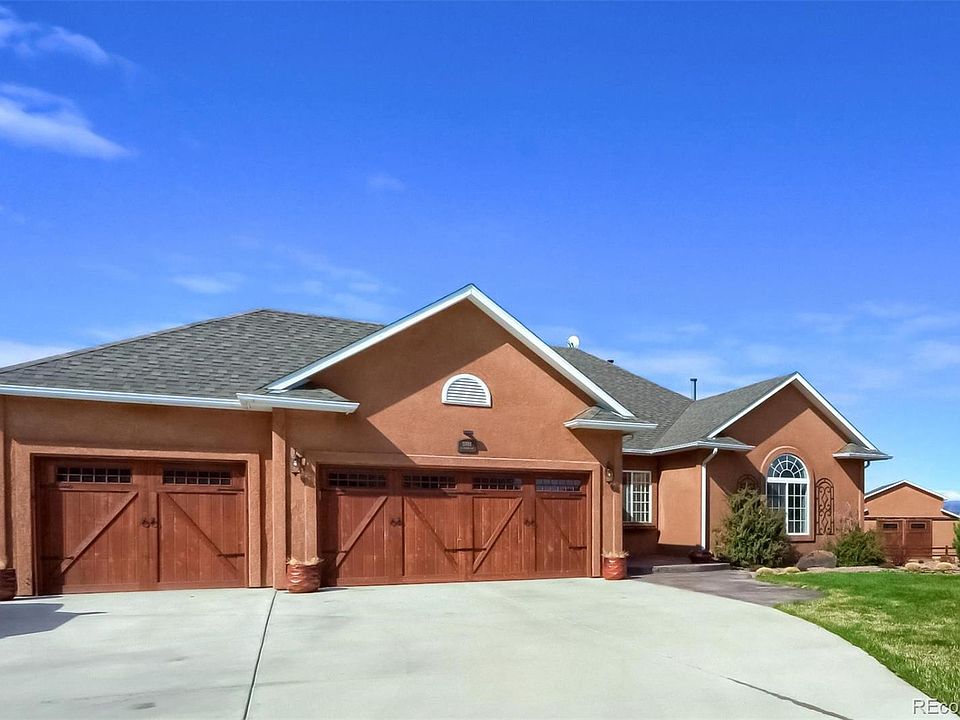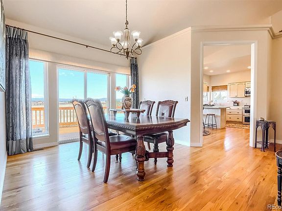 Upon arriving to the Home, you'll notice this Horse Property has Wonderful Street Appeal with a backdrop of Mountains. When you step inside, you will be Welcomed first by the Foyer and the Open Concept Floor Plan that showcases the Vaulted Living Room offering a Lovely Fireplace with a Mantel, Art Niches and Gleaming Hardwood Flooring that flows through most of the Main Level. The Sundrenched Dining Room has Large Windows and a Slider access to the back Deck, with Amazing sweeping Views of the Property and the Mountains; Perfect space for entertaining guests. Bright Gourmet Kitchen offers Stainless Steel appliances with Double Ovens and Gas Range Top, Wood paneled Refrigerator, Plenty of Storage Space with a Pantry, a Peninsula w/ Breakfast Bar and a Sun filled Breakfast Nook with Bay Windows framing Great Vistas. Stepping down to the Walk-out Basement is a Huge Family/Rec Room with Bonus area, ideal as a 2nd Dining or Game area. Also with Fantastic Views, it has a Slider to the Covered Back flagstone Patio and Fenced Yard. Main Level Office has French Doors and a Closet. Enjoy the Breathtaking Scenery from the Main Level Master with Deck Access. This Retreat has a Walk-in Closet, a 5-piece Bath with a Jetted Soaking Tub and has nice separation from the other 2 Main Level Bedrooms that share a Full Bath with Double Sinks. The Walk-out includes 3 bedrooms. One is Expansive and Ideal as a 2nd Family, Theatre or Exercise Room. There's a Full Bath and a Generous sized Laundry Room with Cabinets and a Counter. Barn Amenities: 4 Enclosed Stalls with a covered area outside each stall, Large Storage Area, Electricity and Water to the Barn, plus Room for Tractors, Trailer, Recreational equipment, Hay Storage and Tack Room. Fenced Pastures and Well allows for Horses. Concrete Driveway with additional Off-street Parking for your Guests. Quick Access to I-25. Close to Parks, Trails, Dog Park and Golf. Easy Commute to Monument with Shopping, Dining and Retail.