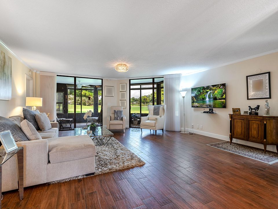 First Floor Updated 2-Bedroom Condo with Golf Course Views in Gleneagles Country Club! Beautifully updated and move-in ready! This spacious first-floor condo features 2 bedrooms and 2 tastefully remodeled bathrooms, with wood-look tile flooring throughout for a clean and cohesive design. The open-concept living area flows seamlessly into a kitchen that combines style and functionality--perfect for entertaining or everyday living. Enjoy serene golf course views from the comfort of your home, creating a peaceful retreat in a fantastic location. Located in the all-ages, private Gleneagles Country Club, a premier residential community with 1,082 homes and condominiums, you'll have access to world-class amenities, including, two 18-hole championship golf courses, 19 Har-Tru night-lit tennis courts, 8 pickleball courts, 3 restaurants and 2 lounges. Card rooms and a state-of-the-art fitness center. Don't miss this opportunity to own an exceptional home in one of South Florida's most desirable country club communities.