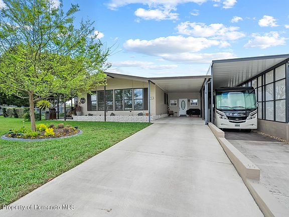 Sellers are very motivated are looking to relocate out of state come take a look Check out this amazing completely remodeled 2/2 home located in the 55+ Gated community of Brookridge. This home has approximately 1900 sq ft of living area and sits on 1 and 1/2 lots. It is also partially fenced for your fur babies. This home is very well maintained and has beautiful landscaping, irrigation, parking for a motor home and or boat which is under cover as well as a concrete drive/pad for servicing, cleaning, loading and or unloading your RV. This home also has 50 amp service outlet, has 2 attached air conditioned work shops, one with garage door that can hold a golf cart if you so desire. The kitchen has stainless steel appliances that are 3 years new and has granite countertops with accent lighting; The living room is large and open; The master bath has claw ft tub and separate shower, master has large closet with barn doors, guest bath has tub/shower combo but also nicely furnished. Last but not least this home has an amazing patio for entertaining. All appliances including washer and dryer all lighting as well as all ceilings will stay with this beauty. Roof is 3 yrs old with transferable warranty. Call today for your private showing.