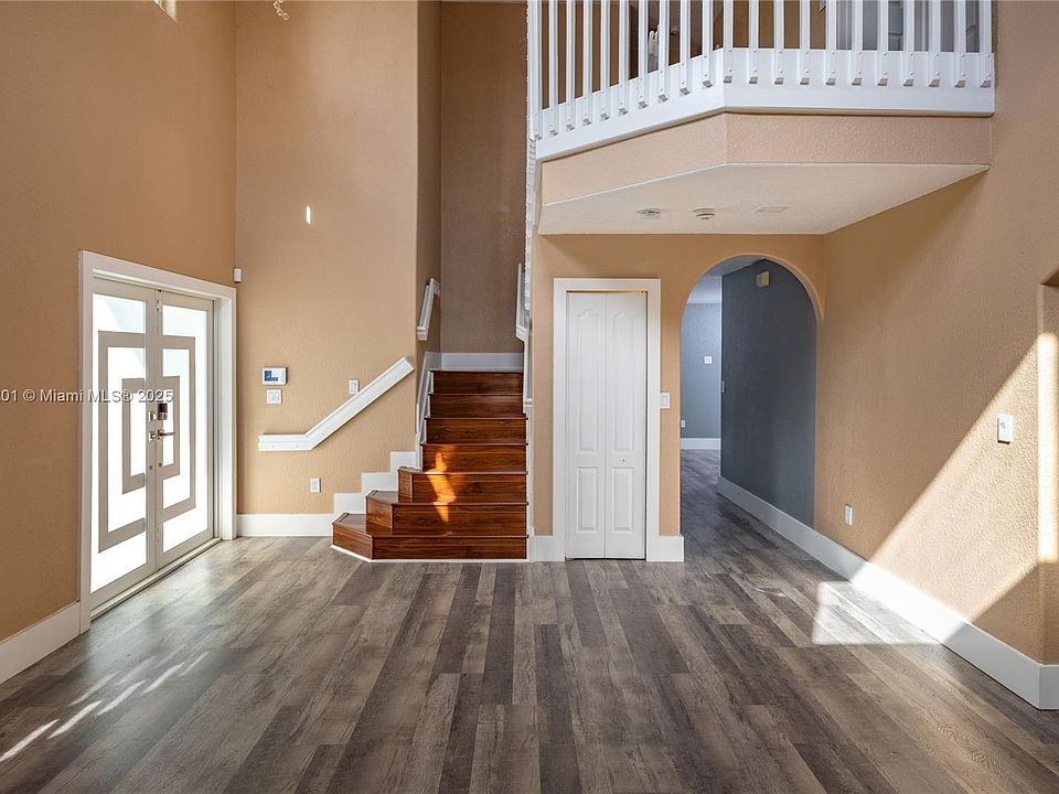 Spacious two-story residenceModern zebra shadesConvenient half bathGenerous kitchenCustom closetsLed lighting