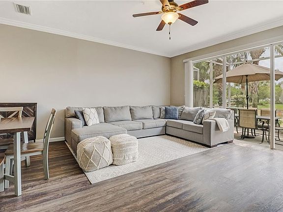 Beautifully updated 3 bedroom, 2.5 bath, 1 car garage in a prime location!!! This home is packed with NEW flooring, paint, roof, NEWER stainless steel kitchen appliances, granite kitchen countertops, crown molding, water heater, washer, dryer and A/C unit. Enjoy the lake view and water features from your screened-in lanai with large Florida glass sliding doors. This home is steps away from the community pool, spa, basketball court, tennis courts, walking paths and more. The Milano Community is in a great location zoned for A rated schools at all levels. Walk or bike to nearby Seed to Table, North Collier Regional Park, Sun-N-Fun Lagoon, beaches and more! Move-in ready with furniture negotiable!!!!
