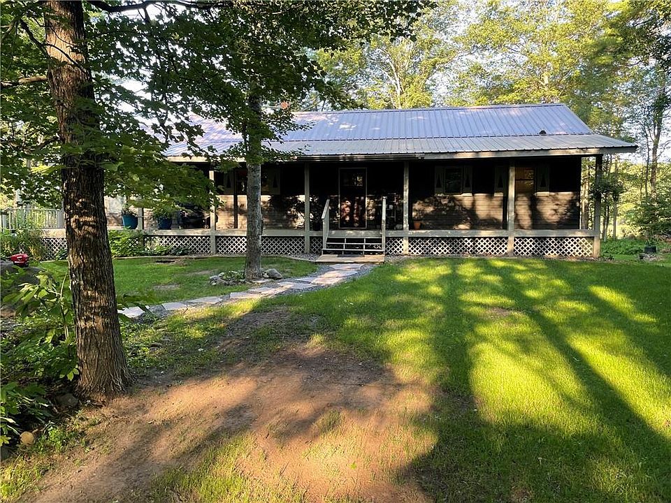 Price Reduced! 3 bedroom 2 bath home located on a private wooded setting close to Hayward and located on 2+ acres. Open concept with vaunted and beam ceiling in the living/dining/kitchen. Main level features a half bath and master bedroom suite. Many recent updates which include a brand new kitchen remodel with a built in microwave. Energy efficient/BLUEMAX basement, cedar siding. Front covered porch and detached cottage-look garage. Westerly exposure to enjoy sunsets from the back deck or three season porch. This is back on the market due to buyers financing falling through, their loss is your gain!