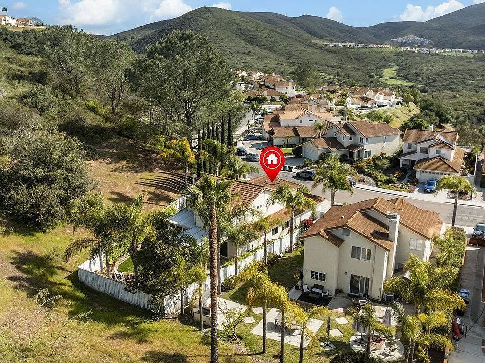 Move-in-ready home nestled on a peaceful street with no neighbor on one side and open space stretching behind the property for added privacy and scenic views. ENTIRE interior painted in designer, neutral tones. Inviting exterior makes a strong first impression, with thoughtfully crafted paver pathways guiding you to the front entrance and continuing to the backyard. Smart, keyless front door welcomes you inside with a layout ideal for contemporary living. Open-concept kitchen seamlessly connects to the family room, with gas fireplace creating a warm and comfortable space. Separate formal living and dining rooms offer additional entertaining settings while a light-filled sunroom provides a flexible space perfect for a home gym, playroom, or creative retreat. Interior features include granite countertops and tile flooring in the kitchen and bathrooms, rich wood flooring on the main level, energy-efficient double-pane windows and sliding doors, and central air conditioning. Attached 2 car garage features epoxy flooring, built-in storage, and an app-enabled garage door opener for added convenience. Professionally landscaped backyard oasis comes with drought-tolerant plantings, UC Verde grass, and jasmine-lined fencing. Covered patio with recessed lighting and multiple lounge areas creates an ideal space for relaxing or hosting guests. Nature lovers will appreciate direct access to hiking and biking trails at Black Mountain Open Space Reserve, as well as the nearby pond behind the neighborhood. Community amenities include a pool, spa, clubhouse, tennis and basketball courts and a playground. Located within the highly desirable Poway Unified School District with no Mello Roos, this home offers the perfect balance of comfort, functionality, and lifestyle. Some photos are virtually staged.