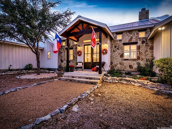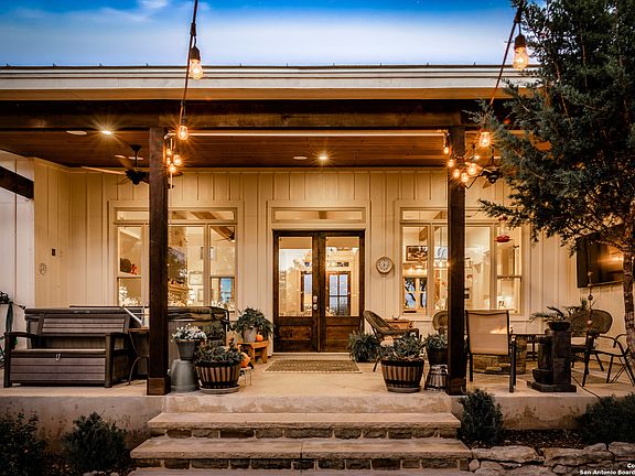 Sitting on the top of the hill overlooking the Wimberley Valley is this modern farm house with long distant views and a separate guest house. The back porch sitting is top notch for watching the sun set, listening to good music with a built in speaker system or watching a game. Inside is filled with warmth between the inviting living room with gas logs, built in bookcases, a chef's dream kitchen with icemaker, wine refrigerator, double ovens, elevated dishwasher, butler style pantry and gas cooktop. There are four bedrooms and 2.5 baths, a mud room, large laundry room, a super clean side entry garage, storage shed, whole house vacuum, speaker system throughout, and complete guest accommodations. Your guest will never want to leave because they will be set up in comfort with a full kitchenette, full bath, living room and dining area.