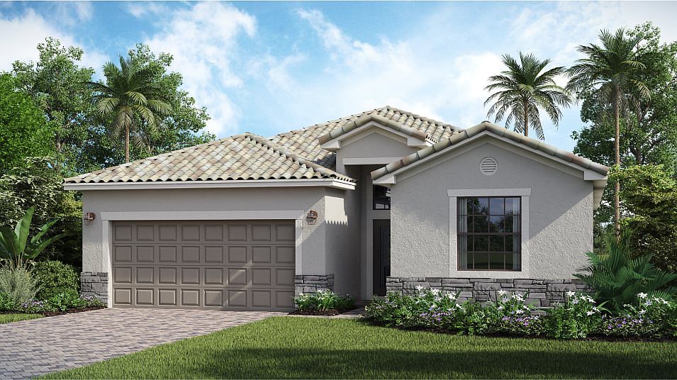 This single-story home offers versatile living, with an open design among the dining room, kitchen and family room, which lead to a covered lanai for outdoor experiences. Surrounding the space are all four bedrooms, including the lavish owner's suite with an adjoining bathroom and a large walk-in closet. A versatile two-car garage completes the home.