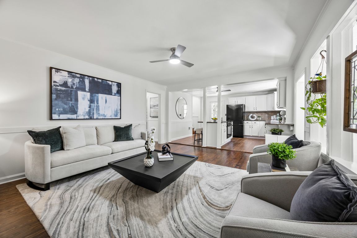 Tucked well back from the street and reached by a private drive, this updated storybook cottage feels worlds away—quiet, green, and magical—yet sits minutes from everything. Original hardwoods, freshly refinished, anchor light-filled rooms including a welcoming family room with beautiful fireplace and electric logs, and a charming dining/breakfast room wrapped in windows (it even features a whimsical low-set "peep" window the former owner added for the family cat or small dog to enjoy a view of the outdoors) and a decorative woodstove. The heart of the home is a granite-topped kitchen with breakfast bar, open to the family room for effortless gathering. Three bedrooms, two updated baths, plus a flexible bonus room (office, gym, or guest) and a sun-splashed attached sunroom. Outside is SPECTACULAR! A fully fenced half-acre with koi pond, screened gazebo, patio, potting shed and a flat lawn that gardeners will adore. An outbuilding offers extra storage as does the side attic storage accessible from the 2nd story, while a partial basement with separate entry adds function. Recent upgrades include a metal roof and new water heater. There is a beautiful walking neighborhood just across the street that leads to Springbrook Park. All in a coveted location near Emory, CHOA, CDC, the VA Center, and just minutes to Decatur Square, Midtown, Buckhead, Brookhaven, and major highways. Tax record size is inaccurate; we have 2020 appraisal confirming size listed.