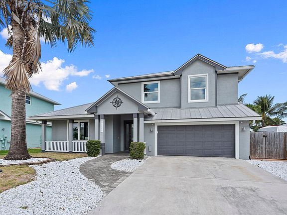 Paradise Found! Discover this stunning 2-story CBS waterfront pool home with direct ocean access and no HOA! This 3-bed, 2.5-bath retreat, fully updated in 2022, boasts luxury vinyl flooring, 7-inch baseboards, and fresh paint inside and out. The modern kitchen features quartz countertops and top-tier GE appliances. Floor-to-ceiling impact glass and sliders offer storm protection and breathtaking views. Relax by the heated/chilled Saltwater pool/spa on the screened patio. Boaters will love the private dock with a 17,000-lb elevator lift, water, electricity, and lighting for up to a 60ft vessel along 80ft of water frontage. A durable metal roof completes this coastal gem. Schedule your private tour today to experience unparalleled waterfront luxury!