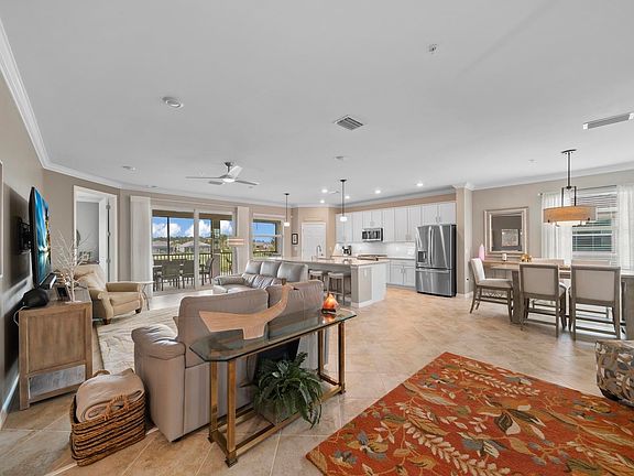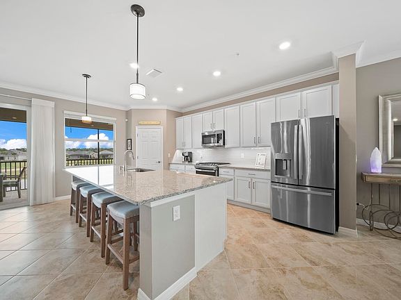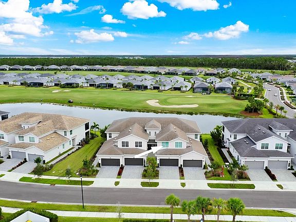 Discover your dream home in the highly desirable Babcock National gated community of Babcock Ranch. This stunning Baycreek coach home crafted by Lennar, offers 3-bedrooms, 2-bathrooms and over 2,100 square feet of luxurious living space complete with breathtaking lake & 5th hole golf course views from your private second-floor lanai. The interior showcases tile flooring throughout the main living areas, complemented by plush carpeting in the bedrooms. The gourmet kitchen is a chefs delight, equipped with upgraded GE appliances, gas cooktop, custom cabinets with roll-out shelving & elegant crown molding, all contributing to an inviting open concept design. With large bedrooms & ample storage throughout this home ensures comfort & convenience. The property also includes a 2-car garage with extra golf cart parking, a brand new tankless water heater & a short walking distance to world class amenities. Babcock National is situated on 460 acres and its residents will call home to full amenities including 18-hole Gordon Lewis golf course, resort-style pool & tiki bar, tennis courts, bocceball, pickleball, fitness center, full-service spa, formal dining room & gated entry to the community.