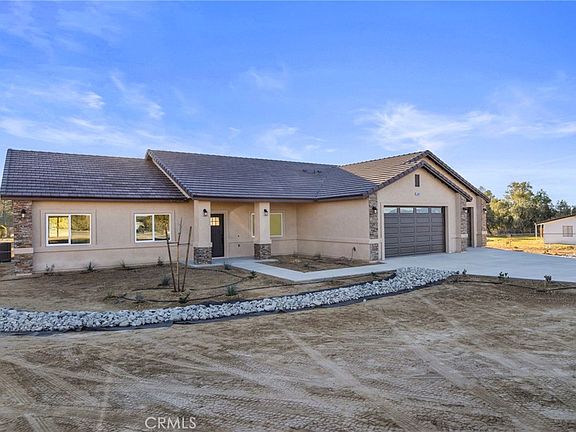 Corner Lot, Stunning New Construction Beauty! Commuter Friendly, Paid Solar! Split Floor Plan, Open Concept. Sitting on just under three quarters of an acre. Discover this exceptional four-bedroom, two-bathroom, open floor home with Mountain Views. This quality-built residence showcases meticulous attention to detail throughout, featuring custom tile flooring, recessed lighting, and ceiling fans that create an inviting atmosphere. The entertainers' kitchen serves as the heart of the home, boasting a generous island with extensive cabinetry, lazy Susan storage, upgraded appliances, and a well-appointed pantry. Quartz countertops and soft-close cabinetry demonstrate the superior craftsmanship evident in every corner. The primary suite offers a private retreat with walk-in closet, sliding glass doors opening to a covered patio, dual vanities, and a luxurious walk-in tile shower featuring accent inlay, dual shampoo niches, and a convenient bench. The remaining three bedrooms provide comfortable accommodations with custom closets and mirrored doors. Both bathrooms feature elegant tile work with decorative inlays, while the second bathroom includes a shower-tub combination and dual sinks. Additional highlights include a spacious utility room with extensive storage, a three-car garage and a large stucco patio spanning the home's width. Conveniently located near shopping, schools, parks, and major thoroughfares. The open-concept design and premium finishes create an ideal environment for both daily living and entertaining guests.