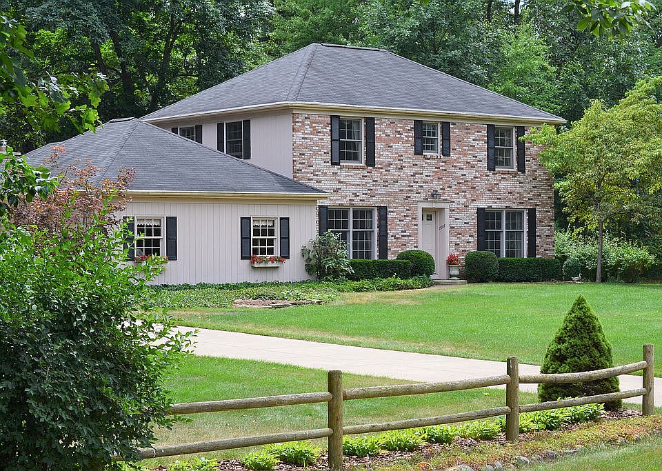 Meticulously kept Georgian-style home on 3.3 partially wooded acres, less than a mile from US-131. Oak parquet floors in the entryway and formal dining room lead to the eat-in kitchen, quartz countertops, ceramic tile flooring, and French doors leading to a peaceful brick patio. Family room offers a masonry fireplace and additional access to the patio. Main floor laundry and half bath. Large, living room has windows on 3 sides and cove molding. 4 bedrooms upstairs; master has private full bath and his-and-hers closets. Neutral colors throughout emphasize the beautiful views out each window. Partially finished, 949 sq.ft. basement provides more space for play or storage. Oversized garage with storage area and additional 10x12 backyard shed. Gorgeous landscaping completes this quiet retreat.