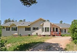 When you click the thumbnail photographs, they will enlarge and descriptions will appear. NEW PRICE: $335,000! An exceptional custom Rancher with full unfinished walk-out basement. Enjoy a casual Colorado lifestyle in this open, sun-filled, easy-living home. Everything you ll need is on the main level: Stunning Great Room with access to the raised deck; separate, yet open, Dining Area; open Kitchen with Breakfast Bar; Laundry Room; dual-entry Full Bath; Master Suite complete with enormous walk-in closet and jetted tub; and large second Bedroom/Study. Plenty of room to expand or simply use as storage in the full unfinished walk-out basement. Oversized windows throughout the home, to include the basement, frame gorgeous, serene Colorado views. The Great Room features a soaring ceiling and a full wall of windows to bring the outdoors in. Private and secluded, yet with easy access to County Line Road and I-25.