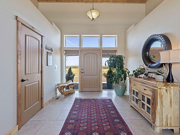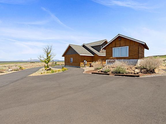 Epic Mnt. views in front of home, & Powell Butte views in back. 4 bed, 3F baths, beautiful 3000 sqft home on 5 ac. Lrg open great room w/ high wood planked ceilings & wood beams. Floor to ceiling windows at back wall. Impressive gas fireplace w/ log mantle & rock above. Windows surround entry door w/ tile floor. LR, kitchen & hall have vinyl plank. Kitchen opens to LR w/ dining area between & built in coffee area w/ wine fridge. Kitchen has skylight, stone countertops, island & S.S. appliances that stay. Off dining area is 4th bed/office. Bonus room upstairs. Bdrms 1 & 2 @ N end of house. Hall bth near bed 1 has tile floor. Bed 2 has ensuite w/ tile floors, dbl sinks, tile shower, walkin closet, & patio door. Primary @ S end has patio door to hot tub, gas fireplace, soaking tub, lgr shower, & walkin closet w/ barn door. 3 car garage w/ basement storage. Laundry rm. Covered deck, Horseshoe pit, green house & fenced garden area. Charming truck in front is included!