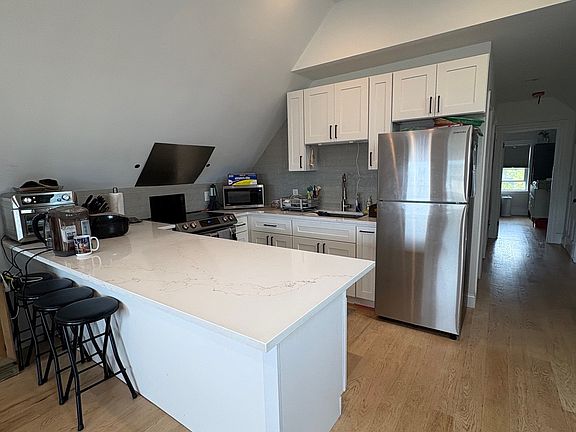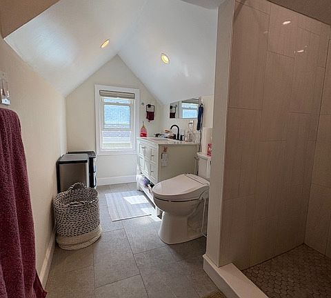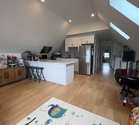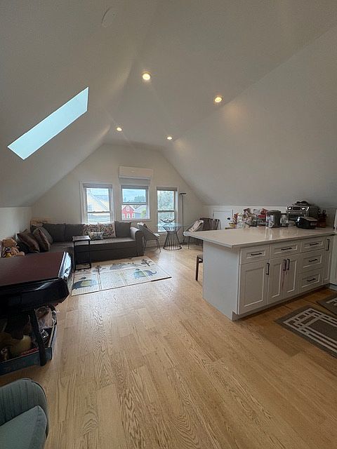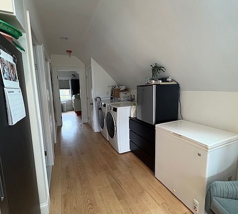 Bright open-layout with cathedral ceiling and two skylights for additional lighting. Entire suite was newly renovated in 2023, with 2 new heat pumps for heating and cooling. 5in oak hardwood floors throughout, with in-unit washer/dryer, and brand new appliances including an induction stove. Prime location on a wide, tree lined street in Somerville's Winter Hill Neighborhood. Winter Hill is considered a transit oriented neighborhood with bike lanes to Gilman Sq (0.5m) or Sullivan Sq (0.7m)T stops. Steps to some of Somerville's best restaurants, Sarma, La Brassa, Fat Hen and the best brewery/coffee shop going Winter Hill Brewery. Steps to Foss park. Play tennis, basketball, soccer (Volo has soccer leagues running constantly) or let your dog run in the huge open field. Steps to Assembly Row with great shopping, restaurants and bars or check out the Volo rec sports set up with pickle ball, volley ball and bocci. Close access to 93 with 9 min drive to Seaport, 11 min to Back Bay, 12 min to airport. Utilities (water, gas, electric) included in rent. Additional basement storage negotiable. Utilities included (water, gas, electric). First, last and security due at signing