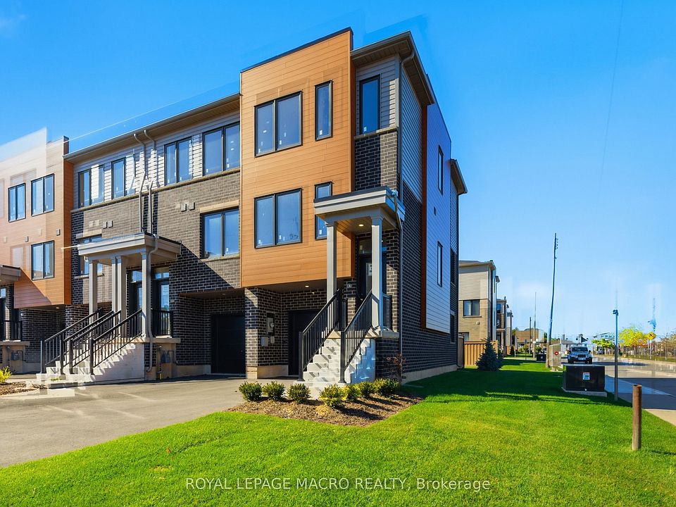 Welcome to Roxboro, a true master-planned community located right next to the Red Hill Valley Pkwy. This new community offers an effortless connection to the GTA and is surrounded by walking paths, hiking trails and a 3.75-acre park with splash pad. This freehold end-unit townhome has been designed with naturally fluid spaces that make entertaining a breeze. The additional flex space on the main floor allows for multiple uses away from the common 2nd-floor living area. This 3 bedroom 2.5 bathroom home offers a single car garage and a private driveway, a primary ensuite and a private rear patio that features a gas hook up for your future BBQ. Granite counter tops, vanity in powder room, a/c and new appliances included.