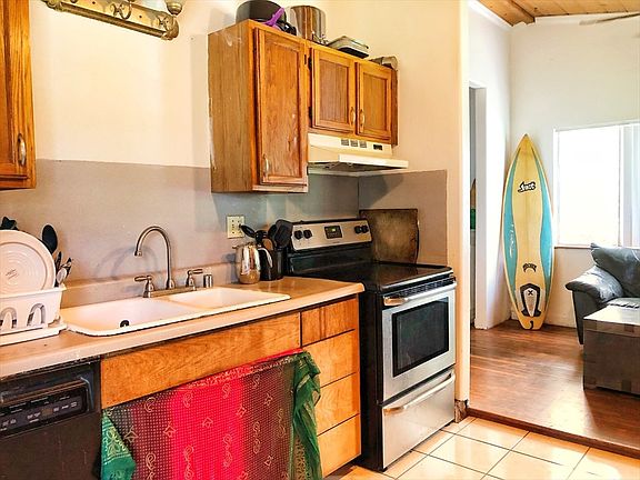 Large custom home with 4 bedrooms on side by side 3 acre lots, for a total of 6 acres! TMK 3-1-6-12-150 and 3-1-6-12-151 are included in the sale! This unique home has split level floors, gorgeous knotty pine vaulted/open beam ceilings, several rooms with solid oak floors, and lots of character! The 6 acres consists of open grassy fields, towering mature trees, rock wall garden beds, multiple fruit trees, a newly constructed detached guest house, a storage shed and so much more! This is a must see for someone wanting a one of a kind, 4 bedroom home with privacy and large acreage! Just needs flooring in a few of the rooms and a little love and this would be a great estate!