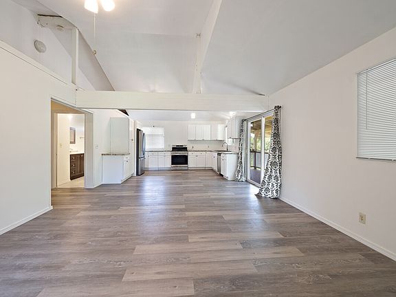 The upper level features 3 large bedrooms and 2 full baths with open concept kitchen and living area. Vaulted ceilings in the kitchen and living area make the room feel open and airy.