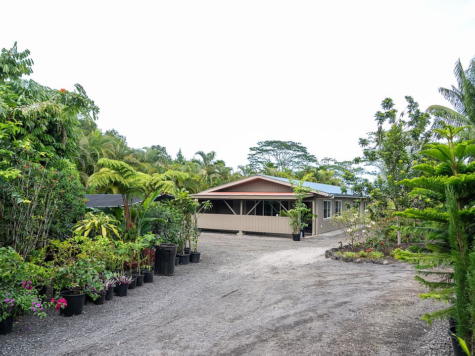 Step into a one-of-a-kind, one-acre botanical oasis formerly known as Hapu'u Gardens. This property is a true dream for nature lovers, boasting a massive collection of over 100 flowering fruit trees and a wide range of native Hawaiian plants, all set around a cozy, well-situated home.
