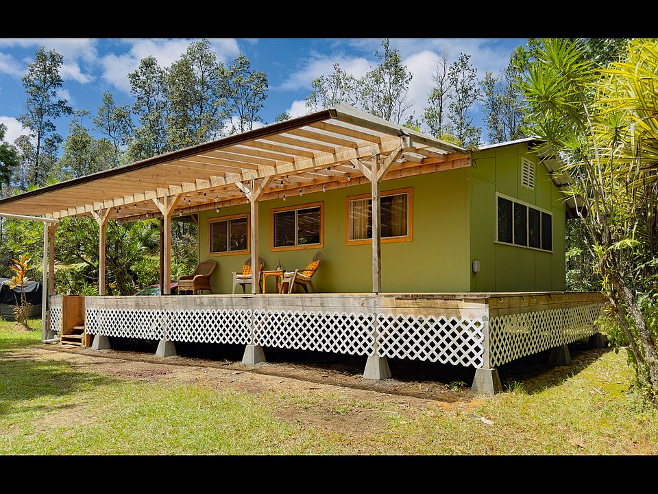 Tucked away behind a gated 300-foot driveway, this one-bedroom, one-bath home sits in a secluded garden sanctuary with an extraordinary variegated banyan tree as the centerpiece. In the shade of the banyan tree you'll find orchids, brilliant red anthuriums, bromeliads, ti, crotons, and ferns weaving a living tapestry, with pathways that wander past fruit trees and open spaces waiting to be explored.<br><br>The home itself is compact, comfortable, and thoughtfully designed for island living. A 300 sq ft great room brings together the kitchenette, dining and living areas in one open space filled with light. The 190 sq ft bedroom includes a reading nook and workspace, and the recently updated bathroom features a tiled shower and modern finishes. A new covered lanai—approximately 10 × 32 feet—extends the living space outdoors, perfect for reading in the shade, afternoon BBQs or just listening to the patter of the tropical rain across the garden canopy.<br><br>See the video here: https://orchidlandestates.com/video/MLS724431.mp4<br><br>Systems and Features<br>• Water: Rain catchment system with triple “Big Blue” filtration — no water bill.<br>• Power: 48-volt solar system with six 365 W panels and 5.12 kWh LiFePO₄ battery — SSPP is already paid and poles are installed if you prefer grid connection.<br>• Internet: High-speed Hawaiian Telcom fiber.<br>• Food: Fruit trees include avocado, lychee, mango, jackfruit, breadfruit, orange, lemon, loquat, star apple, macadamia nut, ice cream bean, clove, cinnamon and allspice. According to a previous owner, there are about 40 trees, though some may be hidden in the jungle. <br><br>At roughly 700 feet elevation, the temperature stays mild year-round — warm days, cool nights, and enough rainfall to keep everything lush. Just a few blocks from Orchidland Drive’s convenience center and within a half-hour of Hilo, beaches, and parks, this property balances privacy, sustainability, and accessibility in a uniquely beautiful setting.
