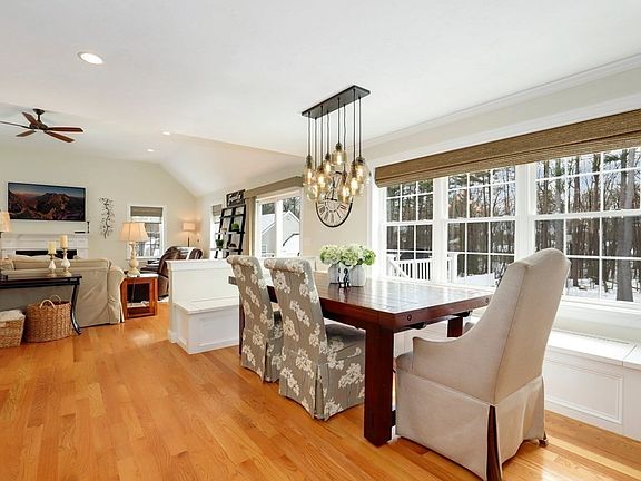 Welcome to a neighborhood of luxury homes located across from conservation and walking trails! Open floor plan: gourmet eat-in kitchen with granite and SS appliances, leading into an over-sized family room with wine bar and paneled Dining Room with coffered ceiling and barn doors for privacy. Views to large backyard, new composite deck and stone patio. Office/bedroom on first floor for visiting relatives with space to make ½ bath into a full. Upstairs you'll find a full primary suite. Sellers enlarged the bath to a larger shower and soaking tub. Also has a huge closet and plenty of storage. Three additional bedrooms, bath and laundry room. Basement has roughed-in bath and ready to be finished/full walk out to the backyard. Large lot: 1.32 acres. Quiet location, minutes to Rte 2 & 495 & MBTA rail to Boston. Littleton has an award winning school system, two recreational lakes and The Point- shopping and dining Destination.
