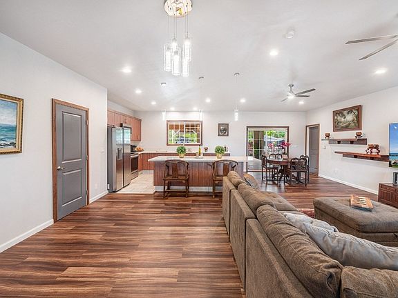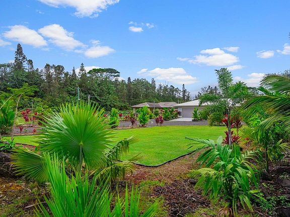 Own a Dayoan Home near Big Island's Sought out Hawaiian Paradise Park. Dayoan Homes are known not only for their High Quality craftsmanship, thoughtful touches, Museum-like interiors & Ultra Exotic, Professionally Designed Landscaping but also its own Post-Purchase Home Customization (PPHC), based on Buyer's Modification Requests. This 4 Bedroom, 3.5 Bath, 3000+ Sq Ft Multi-Living Home is best suited for the homeowner who values the classic ranch lifestyle, featuring 2 Distinct Wings, Expansive Covered Outdoor Lanai-Entertainment Patio, beautiful Interiors & Spectacularly Exotic Greenery, including Fruit Bearing Trees & Plants. Inside this masterpiece you'll be surrounded by 9 foot walls, Ohi'a & Koa window Trims & Casings, Vaulted Ceilings with embedded canned lights & Koa Laminate flooring. This home was designed to be secure, featuring an 8 Camera Security System, enclosed by a Black Coated Chainlink fence, secured by a solar-powered keypad gate. Structurally, the home was build on a solid foundation, with a Strong Corrugated Roof, Fully Insulated Walls & Ceiling with Double Paned Windows allow for unsurpassed noise reduction & temperature optimization during Winter & Summer months. Matching Kitchen & Bathroom Quartz Countertops & Wood Cabinetry, Koa Framed Bath Mirrors, Self-Closing-Pullout Kitchen Cabinets, Premium New Appliances, matching luxury Porcelain Tile Flooring & Shower Walls & Canned Lighting make the space exude Luxury. Outdoor Living in grand style, featuring a custom 712+ indoor-outdoor living area with its own bathroom & entertainment center. The property features its own agricultural carport, which can store construction equipment, boats or trucks. The property features a perfectly leveled, cleared backyard, with front yard exotic landscaping & backyard-sideyard fruit bearing trees. Further indoor/outdoor customizations, development & additions can be coordinated with Dayoan's PPHC program.