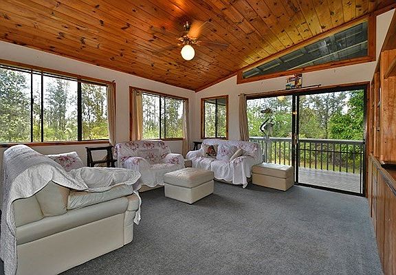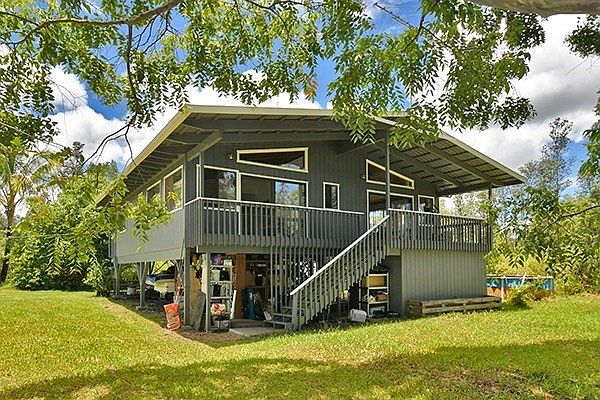 $225,000 HOME ON 3 ACRES IN ORCHID LAND ESTATES. Currently accepting back up offers. 3 Bedroom 2 Bath post & pier two story home located on 3 acres of land on the Big Island of Hawaii. Home is 1,296 square feet with 388 square feet of wrap around porch built in 1996. The exterior of the home was freshly painted at the beginning of this year. Great find in Orchid Land Estates subdivision. Your chance to own a property with acreage and fruit trees in Hawaii! The list of planted fruit trees includes: Apple, avocado, banana, blackberry, blueberry, cherry, cinnamon, orange, tangerine, star fruit, miracle berry, fig, mango, & coconut. Property has two catchment tanks included in the sale, one bonus catchment tank currently being used as a fish pond, the main catchment tank has a UV filtration system. Home sits back from the road with a nice long circular driveway. Estimated dimensions of the property are 125 feet wide by 1045.44. Located near the corner of 40th & Orchid Land Drive, not too far off the pavement just 3/10 a mile. Short drive to Highway 130 just 4.8 miles away. Owner occupied 24 hour notice preferred. Distressed Property Preforeclosure Priced to Sell! For more information about the subdivision please visit www.orchidland.org