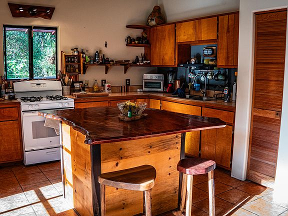 This 2 bedroom, 2 bath single story home has a 336 sf lanai and is located just off Orchid Land Drive. Lots of windows and light add to this open floor plan. The seller is a master woodworker and has created many custom pieces that will be included with the house. Some of these include: Kitchen Island made of Norfolk Pine with a Lychee counter top; the light over the island is also custom made with Milo. There is a light over the stove made with lychee as well as a key shelf and hook plates. Kitchen shelves are made from Milo and Koa. There are corner shelves in the living room made of Milo and in the bedroom made of Coconut. These custom features give the home a unique and creative appeal. The carport and convenient parking make this home easy to access.