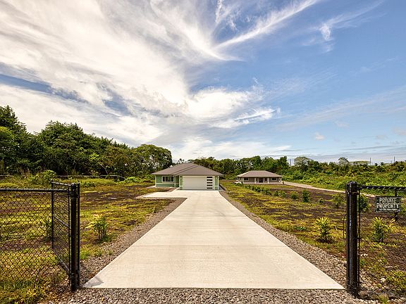 Welcome to your dream home, a stunning new construction just off 34th Ave, steps from Orchidland General Store! This 3-bedroom, 2-bathroom modern retreat offers 1,356 sq ft of open-concept living space, with over 2,100 sq ft under roof. Nestled on a fully cleared, gated, and partially fenced 1-acre lot, this property combines privacy and convenience.<br>Step inside to soaring high ceilings, abundant natural light streaming through large windows, and durable vinyl flooring throughout. The heart of the home is the gourmet kitchen, featuring sleek quartz countertops, stainless steel appliances, and a perfect view of the spacious living area—ideal for entertaining or keeping an eye on the kids. <br>The tiled bathrooms boast elegant brushed nickel finishes, with a relaxing tub in the hall bath and a luxurious walk-in shower in the master suite, complete with a generous walk-in closet. Mirrored closet doors and ceiling fans add style and comfort throughout.<br>Outside, enjoy a covered back lanai, wrap-around sidewalks, a concrete driveway, and a 2-car garage with an opener. This move-in-ready home blends modern design with practical living, perfect for families or those seeking a serene island lifestyle.