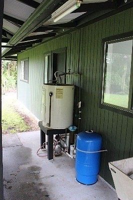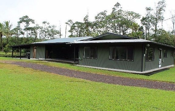 This is a permitted Ohana, 2 homes on 2 cleared Acres of land, fully fenced and beautifully landscaped with mature fruit trees. The front home is a 3 Bedroom with 1 Full bath. The Kitchen is cleared of all cabinets and counters allowing the new Homeowner to add their own personal design touch. There is a 4-car carport, that can also be used as a covered lanai, separated by a Storage/Studio and 3/4 bath unit. The back home is a 2 Bedroom with a 1 1/4 bath. This Home comes with a complete kitchen, including appliances. A large picture window allows views of the expansive front yard and the front home. This Home will be sold with all furnishings to be included.