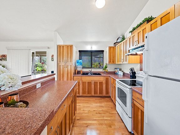 A rare opportunity to own a lovely home in Tiki Gardens on the only paved road in the subdivision. This sweet home has been very lightly lived in and well cared for by the current owner. An energy efficient home indeed with eight solar panels owned outright on the net metering system & LED energy efficient lighting allowing for a very minimal electric bill. In 2018 a new catchment tank, liner & pump were added to the home along with water efficient shower heads. As a strong believer in preventative maintenance, the owner has had interior and exterior pest control done by Orkin every 4 months & regularly has the eves & surrounds of the home power washed. Endless time and energy has been tastefully landscaping the abundant property with plants that flourish here in Hawaii while maximizing the open yard space, this is not one to be missed.