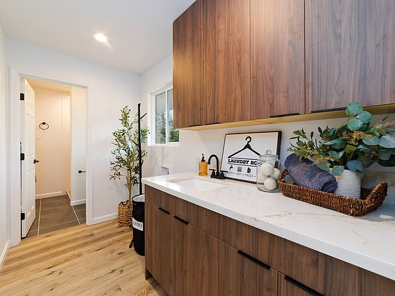 The enclosed laundry room offers beautiful cabinetry and a third bathroom perfect for having guest when entertaining from the 2 car carport.