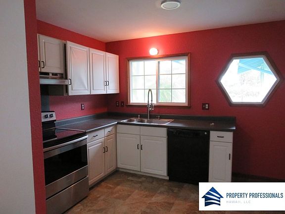 Fully fenced, 3 bed/2 bath in Ainaloa with additional den, great floorplan, enclosed garage, and large, covered back lanai. Includes range, refrigerator, dishwasher, UV light system, yard service. Tenant responsible for electric, water, trash, cable, internet, phone. No pets.