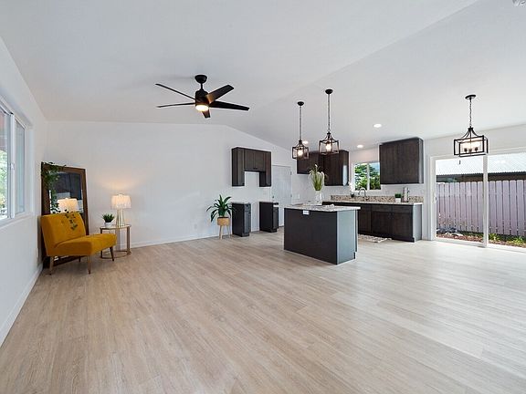 Stunning 3 bedrooms'/ 2 bath. turnkey. single-family home that is just awaiting your personal touches. Open floor plan with vaulted ceiling in the living room/ kitchen. a spacious master and walk-in closet. Appliances are to be installed at closing. Finished two-car garage with laundry located within. Rock wall with privacy fence recently completed. The exterior Color is lighter than the picture is presenting.