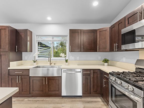 The living area offers a perfect backdrop for cozy family gatherings or lively entertaining, setting the stage for countless memories to come. The heart of the home — a stylish kitchen adorned with exquisite quartz countertops, ample cabinetry, convenient dishwasher, gas stove, and a functional layout, this kitchen is designed for both cooking and conversation. Host delightful dinner parties or casual weekend brunches with ease!
