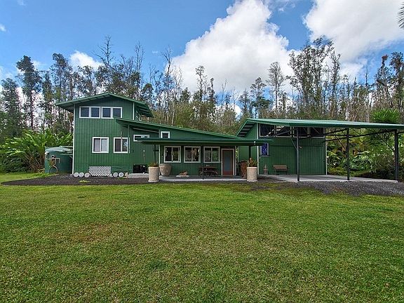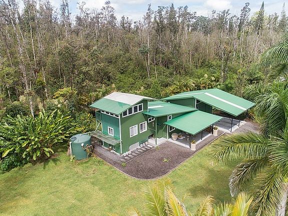 One of a kind estate up a quiet country road with quality custom construction and artisanal accents throughout. Perfect place to grow your own food and create a self sustaining lifestyle. Home is hidden from the road by mature manicured landscaping down a long winding driveway near the back of the property. Greeted by a large front lanai and great room boasting vaulted ceilings, rare ohia and birch cabinetry, custom 3/4" granite backsplash, mosaic bar-end, and stained concrete floor. Master bedroom and bathroom with countless custom touches are comfortably separated out the backdoor. Upstairs suite has it's own entrance, a kitchenette, and potential to be a stand-alone suite. A fully permitted adjoining steel structure features a 20' x 20' carport and a 20' x 20' shop or studio with a sliding door that's safe, secure and lockable. High speed fiber optic internet in place as well.A professionally constructed greenhouse measuring 24' x 36' covers the second living area consisting of a great room with kitchen and 3 bedrooms for friends, family, or visitors. Second bathroom is a detached 8' x '16 structure with a shower stall, separate restroom, and similar custom touches.Live in your own botanical wonderland and harvest enough food and fruit for a Farmer's Market! Grow and gather the goods from your own grounds- including avocado, abiu, banana, coconut, cacao, cinnamon, longan, lychee, mango, papaya, pineapple, rollinia, and tangerine. A chicken coop and fenced chicken run near the rear for your feathered friends as well. 24' x 36' greenhouse is constructed and ready for anything else you want to grow. Well designed grounds feature wide open lush lawns and colorful tropical ornamentals along with old growth ohia and many palm and bamboo varieties. Rock walls and terraced areas add depth and elevation.Very apparent pride of ownership and attention to aesthetics- a unique property with potential for many different living arrangements.