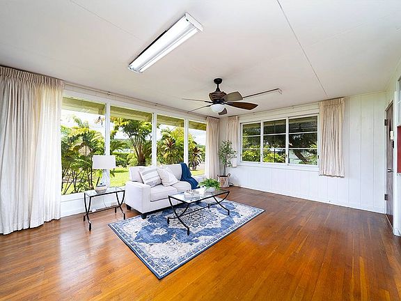 Charming well-loved mid-century home w/mature & lovely landscaping w/tropical flowers & fruit trees (lemon, yuzu), lily pond.  Storage shed & cement slab wh/can serve as slab for future covered lanai.  Located in the cool & comfort of the country in Keaau Town yet close to conveniences of shopping, schools, medical. Home has been maintained throughout the years  w/standing seam roof (2011),  tent fumigated w/warranty,   Sentricon bait stations, ceiling fans, exterior lighting, although one bathroom needs work, as well as, some floor areas.