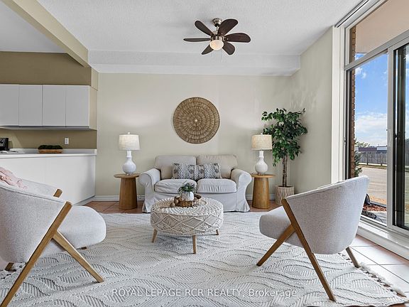 Bright & Spacious Main Floor Condo in the Heart of Orangeville! This beautifully laid out 2-bedroom condo offers the perfect blend of comfort and convenience. Featuring an open concept design with soaring 9 ft ceilings, the space feels even larger than it is. It is flooded with natural light thanks to its sunny south-facing exposure. Step out from the living area onto your private terrace; perfect for morning coffee or summer evenings, with a clear view of your own parking spot just steps away. The efficient kitchen boasts modern appliances, a handy pantry, and flows effortlessly into the living and dining space, making entertaining a breeze. The spacious primary bedroom includes a massive walk-in closet and direct access to a well-appointed semi-ensuite bath. You'll also appreciate the convenience of in-suite laundry. Located within easy walking distance of downtown Orangeville's shops, restaurants, and farmers market. This is carefree condo living at its best!