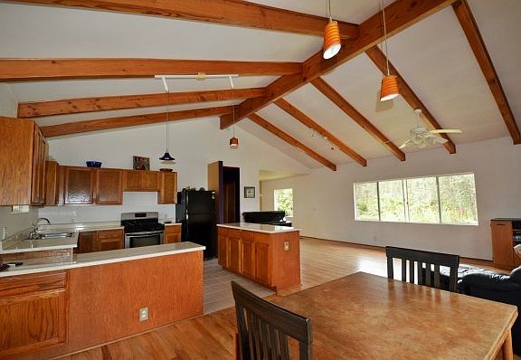 Welcome home! This meticulously landscaped 3 acre parcel sits tucked amid native Ohia trees in a peaceful setting located less than 15 miles from Hilo’s shopping district. The custom-built four bedroom, three bath home on the property enjoys maximum privacy, thanks to a 500 foot setback. This two story residence features open beam ceilings, Silver Oak hardwood flooring, Ohia wood staircase, and a wrap-around view deck overlooking the dozens of tropical fruits and plants below. Thoughtful design work provides both form and function. An open kitchen and living area allows for great natural lighting and maximum airflow, making this a perfect space for large gatherings. Need more room? Just slide open the doors leading out to your expansive covered deck, equipped with its own outdoor sink and prep area, perfect for afternoon bar-b-ques. A well-insulated music room on the bottom floor easily converts to a library or office, while dedicated storage and laundry rooms and generous attic space help to avoid clutter. Quartzite tile adorns the exterior walkways, leading up to a hand-crafted marble and quartzite outdoor shower, perfect for rinsing off after a full summer day outdoors. A beautifully constructed 200 square foot Ferrocement dome has been built on the property, perfect for use as an art studio, guest room, or storage area. The dome is well insulated, keeping a cool interior temperature even on hot summer days. The structure has been wired for electricity. A 2,000 gallon catchment tank sits adjacent. Over 1.5 acres of the property has already been fenced, with mature landscaping including Ohia, Coffee, and a large selection of tropical fruits. Note: cement dome and music room are unpermitted. Buyer is pursuing final permits for main dwelling. Buyer, buyer’s agent are responsible for investigating all possible permitting options with applicable County of Hawaii agencies.